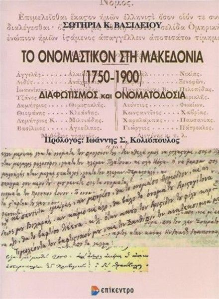 H youropia, υποδέχεται με μεγάλη χαρά, το νέο πόνημα της τακτικής αρθρογράφου και συνεργάτιδος μας, Σωτηρίας Βασιλείου, με τίτλο “Το ονομαστικόν στη Μακεδονία (1750-1900): Διαφωτισμός και Ονοματοδοσία”. Το βιβλίο κυκλοφορεί από τις εκδόσεις Επίκεντρο, ενώ τον πρόλογο υπογράφει ο ομότιμος καθηγητής της Νεότερης Ιστορίας, Ιωάννης Σ. Κολιόπουλος. Σωτηρία, καλοτάξιδο!