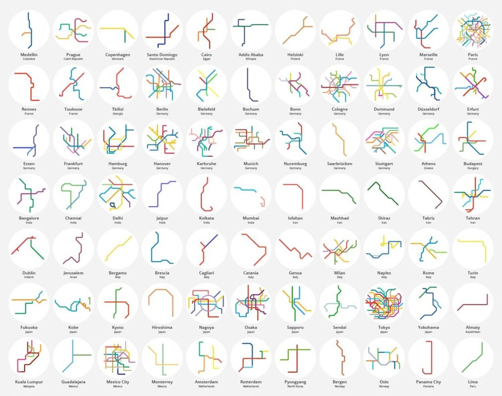 Μερικά από τα σχέδια των μετρό αυτού του κόσμου είναι σωστά κοσμήματα με την πολυπλοκότητά τους και τον συνδυασμό των γραμμών τους. Μπορείς να χαζέψεις ελεύθερα: